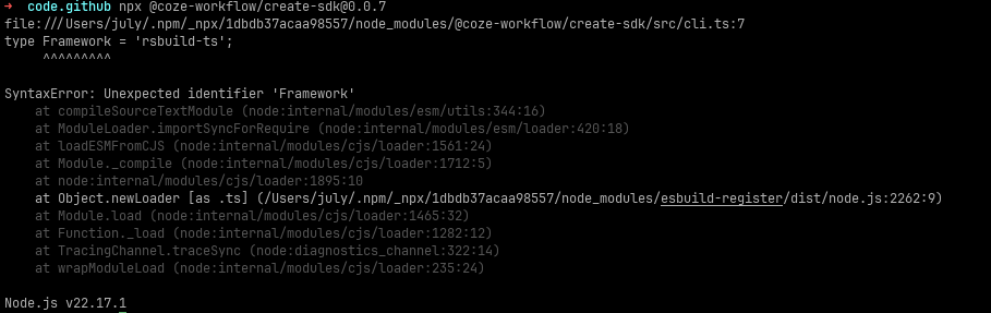 npx @coze-workflow/create-sdk@latest然后就报错了!
