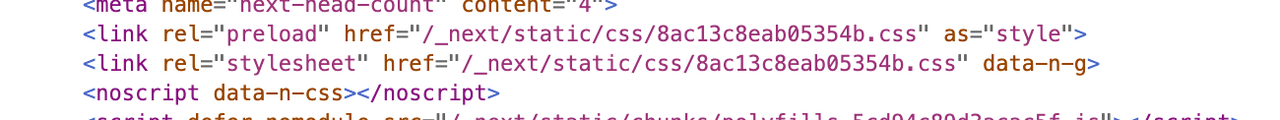 可以看到 Next.js 自动生成的 link 非常的标准,先声明 preload 来预加载文件并且再声明一次文件本身来保证样式的加载优先级,所以大概率不是 CSS 文件加载问题。
